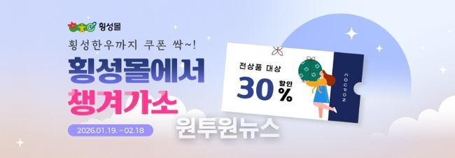 (원투원뉴스) 횡성군은 설 명절을 앞두고 지역 중소기업 및 소상공인의 판로 지원과 민생 경제 활성화를 위해 ‘2026년 횡성몰 설 명절 특별 기획전’을 개최한다고 밝혔다.