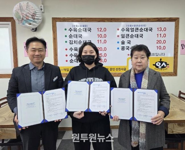 ‘원여사순대국’은 이번 협약을 통해 1월부터 매월 순댓국 10그릇을 기부하기로 했으며, 기부된 음식은 관내 취약계층에게 따뜻한 한 끼로 제공될 예정이다.