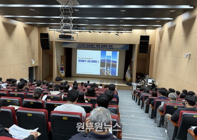 (원투원뉴스) 서귀포시에서는 침체된 건설경기 활성화의 발판을 마련하고자 대한건설협회(전문포함) 회원 및 건설업 면허 등록업체 종사자 등 100여 명이 참석한 가운데 ‘'26년도 공공발주 사업 설명회’를 1월 16일 14시에 서귀포시청 별관 2층 문화강좌실에서 개최했다.