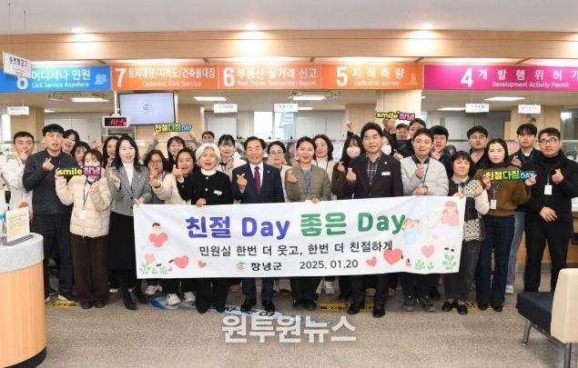 (원투원뉴스) 창녕군은 1월 20일 민원봉사과 전 직원을 대상으로 ‘친절․청렴 다짐 데이’를 실시하고 군민에게 신뢰받는 행정서비스 제공을 위한 친절 실천 의지를 재확인했다.