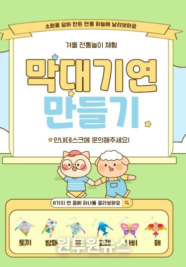 (원투원뉴스) 김천시시설관리공단(이사장 김재광)이 운영하는 김천시립박물관은 겨울을 맞아 작은 전시 '하늘에 띄운 새해 소원, 연날리기'를 1월 20일부터 2월 22일까지 운영한다.
