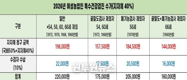 (원투원뉴스) 가평군은 여성농어업인의 농작업 질환 예방과 건강복지 증진을 위한 ‘여성농어업인 특수건강검진 사업’을 오는 2월 20일까지 사전접수 받는다고 밝혔다.