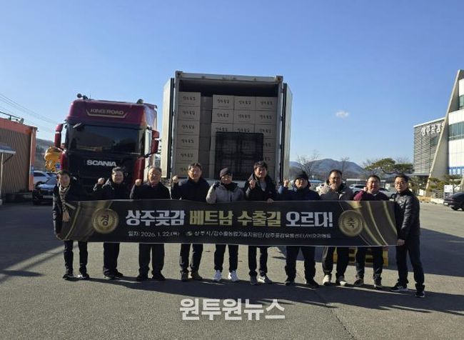 (원투원뉴스) 상주곶감유통센터는 2026년 새해 처음으로 회원농가, 수출업체 주식회사 오리엔트, 감수출농업기술지원단, 상주시 관계자가 참석한 가운데 상주시 최고 농산품인 곶감을 베트남으로 수출 했으며,