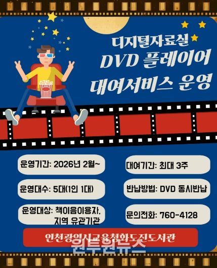 (원투원뉴스) 인천광역시교육청화도진도서관(관장 한상철)은 시민의 미디어 접근성을 강화하고 폭넓은 문화 향유 기회를 제공하기 위해 2월부터 ‘DVD 플레이어 대여 서비스’를 운영한다.