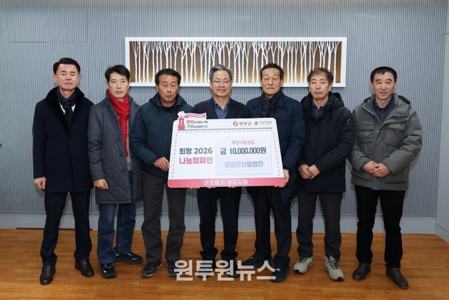 (원투원뉴스) 영양군 관내 산림사업 법인 6개사가 1월 26일 영양군청을 합동 방문해, 어려운 이웃을 위한 '희망2026나눔캠페인' 성금 1,000만원을 전달하며 지역사회에 훈훈한 감동을 전했다.
