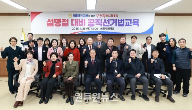 (원투원뉴스) 창원특례시의회는 다가오는 설 명절을 대비해 의원과 직원 100여 명을 대상으로 26일 공직선거법 교육을 진행했다.