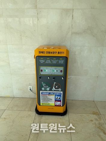 (원투원뉴스) 김천시시설관리공단(이사장 김재광)은 시민 이용 편의 증진을 위해 김천실내수영장 1층 로비에 전동보조기기 충전기 설치를 완료했다고 밝혔다.