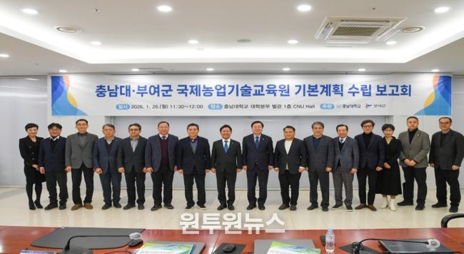 (원투원뉴스) 부여군은 지난 26일 충남대학교에서 박정현 부여군수와 김정겸 충남대 총장 등 관계자 28명이 참석한 가운데 ‘국제농업기술교육원 설립 기본계획 수립 최종 보고회’를 개최했다.