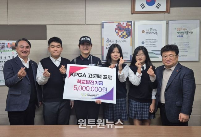 (원투원뉴스) 제주도교육청 남원중학교는 본교 동문인 프로골퍼 고군택 선수가 모교를 방문해 학교 발전기금 500만 원을 기탁했다고 27일 밝혔다.