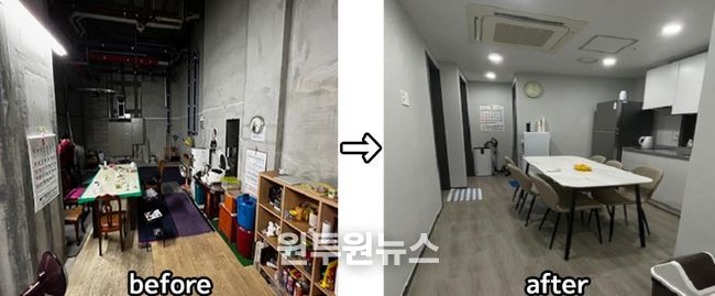한편, 김포시는 2022년부터 2025년까지 총 60개 단지에 약 2억6천만원을 투입해 휴게시설 100여 곳의 개선을 지원했으며, 개선을 완료한 단지에는 ‘경비·청소원 휴게시설 현판’을 무상 제공하고 있다. 그 결과, 운양동의 한 아파트단지는 좁은 지하 임시 휴게시설에서 벗어나 지상에 휴게시설을 새로 조성하며 취침실과 샤워실, 주방을 갖추고 냉난방 설비까지 완비하는 등 이용 여건을 크게 개선하기도 했다. 이 덕분에 해당 단지는 지난해 ‘경비·청소 휴게시설 개선지원 유공’ 경기도지사 표창을 받기도 했다.