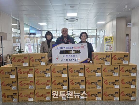 (원투원뉴스) 김해시 칠산서부동 소재 식품업체‘가온길’의 최숭영 대표는 설날을 맞아 관내 취약계층 지원을 위해 라면 50박스(170만원 상당)를 칠산서부동 행정복지센터에 기탁했다.