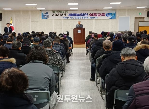 (원투원뉴스) 영광군은 지난 1월 19일부터 26일까지 대마면을 시작으로 각 읍·면에서 10회에 걸친 '2026년 새해농업인 실용교육'을 성황리에 마쳤다. 올해 교육에는 3,180명의 농업인이 참석해 전년보다 1,000명 이상 늘어나는 등 현장의 높은 관심 속에 교육이 진행됐다.