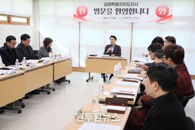 (원투원뉴스) 김진태 강원특별자치도지사는 1월 27일 오후 2시 강릉의료원을 방문해 의료원을 중심으로 한 도 공공의료 전반을 점검하고, 의료원 현장의 목소리를 듣는 시간을 가졌다.