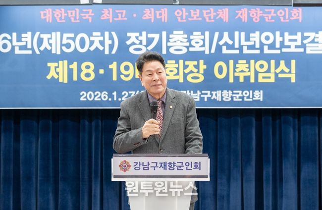 (원투원뉴스) 강남구의회는 27일 논현2동 주민센터 7층 대강당에서 열린 ‘강남구 재향군인회 이·취임식 및 신년 안보결의대회’에 참석했다.