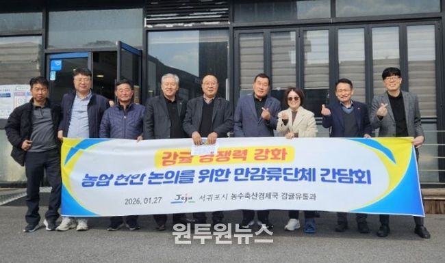 (원투원뉴스) 서귀포시는 2026년 무관세 미국산 만다린 수입 및 감귤 유통 상황 등 농업 현안 논의를 위해 만감류 단체장 간담회를 27일 개최했다.