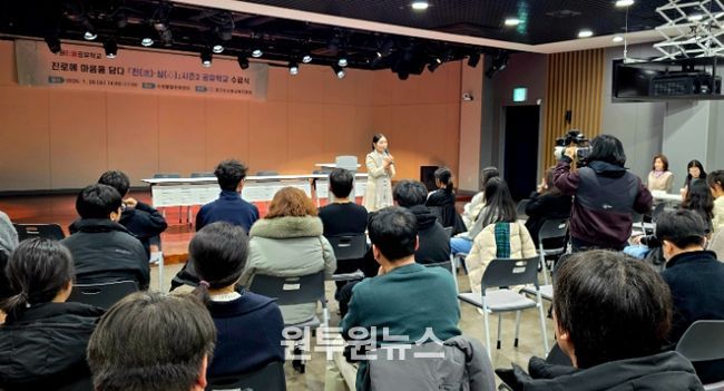 (원투원뉴스) 경기도수원교육지원청은 1월 28일 수원 팔달문화센터 예당마루에서 ‘2025 수원 진로 E:음 공유학교 - 진로에 마음을 담다(진심공유학교)’ 시즌2 수료식을 개최했다.