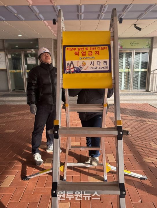 (원투원뉴스) 경북교육청은 학교와 기관에서 발생할 수 있는 사다리 추락사고를 예방하기 위해, 사다리 사용 시 위험 요인을 사전에 차단하는 예방 중심의 안전관리 강화에 나섰다고 29일 밝혔다.