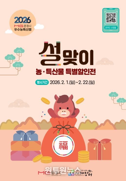 (원투원뉴스) 문경시는 다가오는 설 명절을 맞아 중부내륙고속도로 문경휴게소 상·하행선 직판장, 온라인쇼핑몰 '문경사랑새재장터'에서 2월 1일부터 2월 22일까지 3주간 『설맞이 농특산물 특별할인행사』를 진행한다.