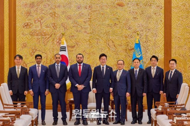 (원투원뉴스) 이재명 대통령은 28일 오전 「모하메드 빈 압둘아지즈 알-쿨라이피(Mohammed bin Abdulaziz Al-Khulaifi)」 카타르 국왕 특사를 접견했다.