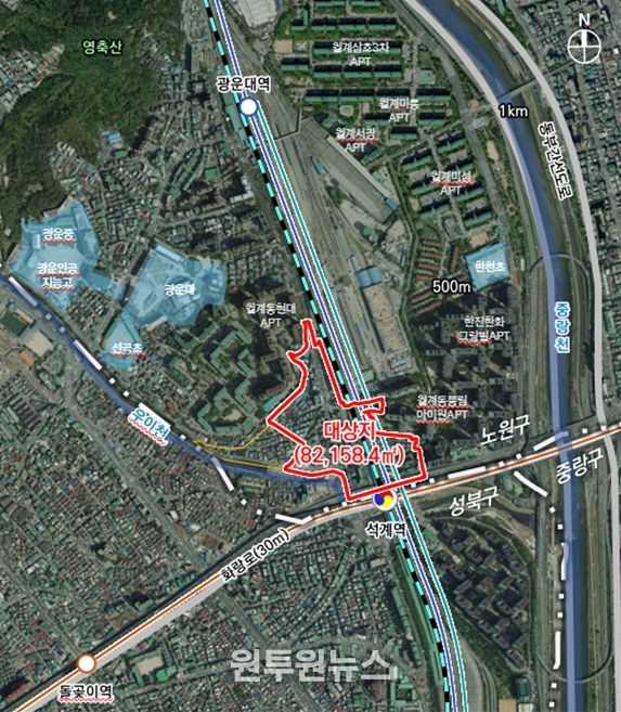 대상지는 지하철 환승역인 석계역 일대로, 역세권 중심기능 및 연결기능 강화를 목표로 82,158㎡ 규모의 지구단위계획구역 신설 계획을 수립했다.