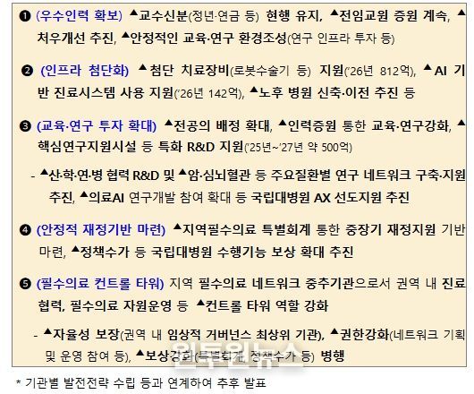 하기 위함으로, 지역 환자가 믿고 찾을 수 있는 진료‧교육‧연구 거점병원으로 육성하기 위한 첫걸음이다. 정부는 이와 함께 지역의사양성법 시행, 필수의료법 제정 등을 통해 지역 의료인력 확보 및 안정적인 재정투자 기반 마련 등 지역의료 강화 정책을 종합적으로 추진하고 있다.