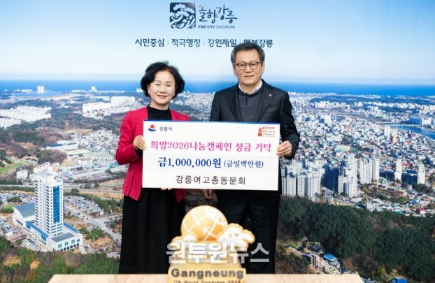 (원투원뉴스) 강릉여고 총동문회(회장 우명숙)가 설 명절을 앞두고 29일(목) 강릉시에 현금 100만 원을 기탁하며 희망 나눔 캠페인에 동참했다.