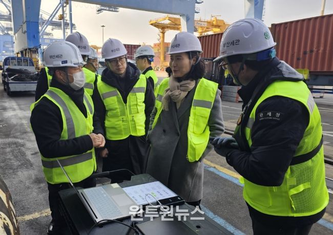 (원투원뉴스) 이진희 관세청 통관국장은 1월 29일 부산신항(부산광역시 강서구 소재)을 방문하여 해상화물 통관 현장을 점검했다. 이번 현장점검은 해상화물을 이용한 마약 밀반입 차단 단속체계를 점검하고, 보세화물의 원활한 통관과 물류흐름 실태를 종합적으로 살피기 위해 마련됐다.