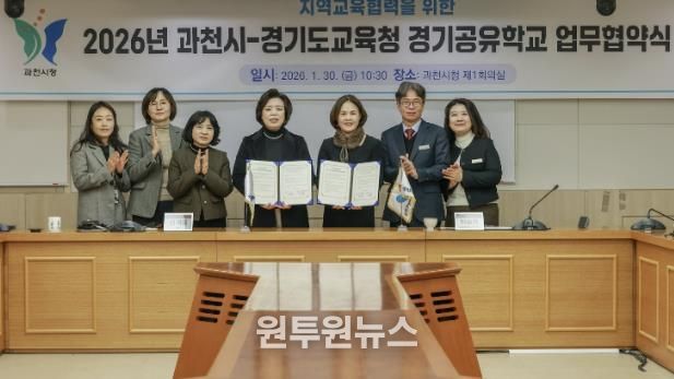(원투원뉴스) 과천시는 안양과천교육지원청과 30일 시청 제1회의실에서 ‘지역교육협력을 위한 경기공유학교 업무협약’을 체결했다.