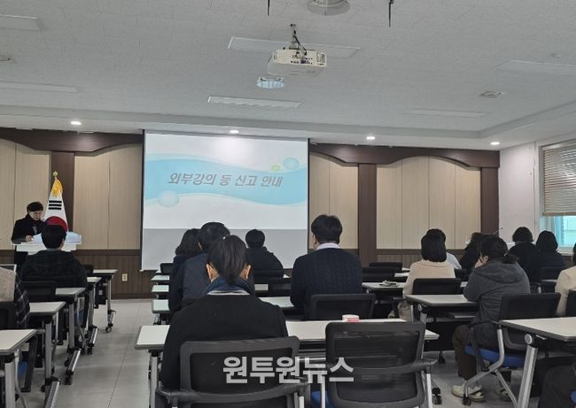 (원투원뉴스) 옥천교육지원청은 2월 2일 대회의실에서 전 직원 대상으로 건전한 공직풍토 조성을 위한 청렴 특강을 실시했다.