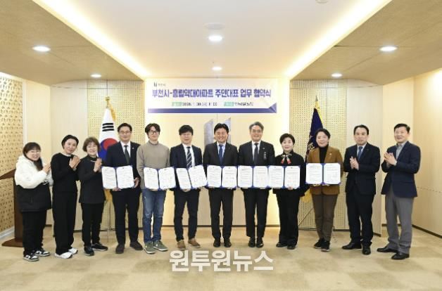 (원투원뉴스) 부천시는 1월 30일 시청 만남실에서 흥립약대아파트 주민대표, 현대흥립통합재건축추진준비위원회와 함께 ‘현대건설 보유 지분 기부채납(무상귀속)을 위한 업무협약’을 체결했다.