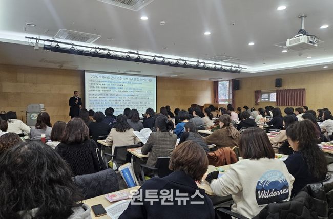 (원투원뉴스) 부산 북구는 지난 30일, 북구육아종합지원센터 대강당에서 관내 어린이집 원장과 회계 담당자 90여 명을 대상으로 ‘2026년 어린이집 재무․회계 등 역량 업(UP) 교육’을 실시했다고 밝혔다.