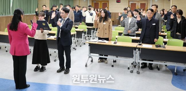 김 미 교육장은 “이번 선서식이 서로 배려하고 존중하는 건강한 조직문화가 뿌리내리는 계기가 되기를 기대한다”며, “앞으로도 전 직원이 행복하게 근무할 수 있는 직장을 만들기 위해 지속적으로 소통하고 노력하겠다”고 밝혔다.