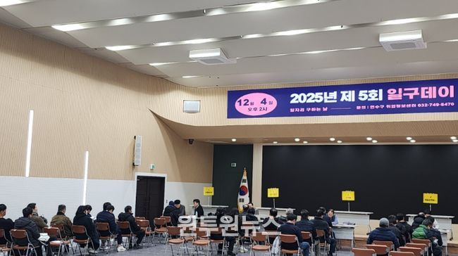(원투원뉴스) 연수구는 오는 5일 오후 2시부터 4시까지 구청 3층 대회의실에서 ‘연수구와 함께하는 일자리 매칭! 2026년 제1회 일구데이’를 개최한다.