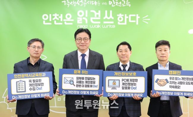 (원투원뉴스) 인천광역시교육청은 개인정보 보호의 중요성을 알리고 경각심을 고취하기 위해, 이달 3일부터 ‘개인정보 보호 캠페인’을 추진한다.