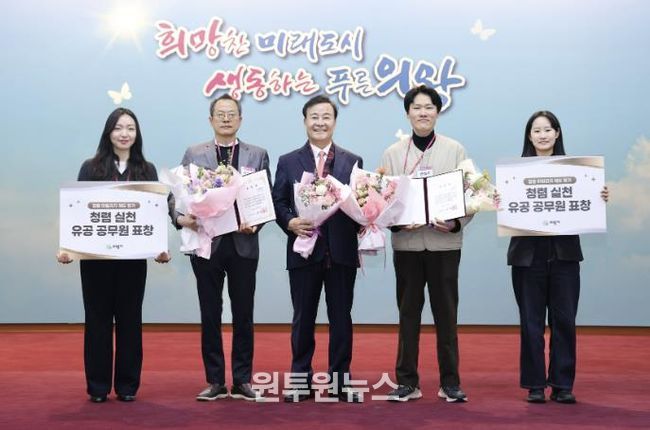 이날 표창을 받은 3명의 공무원은 청렴 교육과 청렴 퀴즈, 청렴 서약 등 각종 청렴 시책에 적극적으로 참여해 가장 높은 마일리지를 획득했으며, 동료 직원들의 모범이 된 점을 높이 평가받았다.