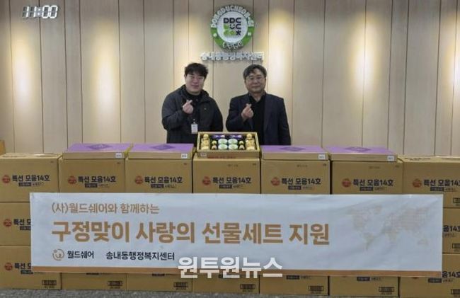 임은승 송내동장은 “월드쉐어의 따뜻한 나눔 덕분에 어려운 이웃들이 풍성한 명절을 보낼 수 있게 됐다”라며“후원 물품은 관내 복지 사각지대 및 취약계층에 골고루 전달해 추운 겨울 따뜻한 명절을 보낼 수 있도록 하겠다”라고 전했다.