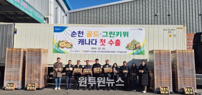 (원투원뉴스) 순천시는 3일 순천거점산지유통센터에서 ‘2026년 순천 참다래 캐나다 첫 수출 기념 상차식’을 개최했다고 밝혔다.