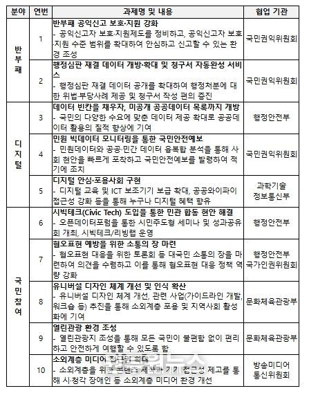 특히, 국민참여를 통한 사회문제 해결, 디지털·AI 기술을 활용한 행정 서비스 개선, 공익신고 보호 강화 등 국민 체감도가 높은 핵심 분야에 역량을 집중한다.