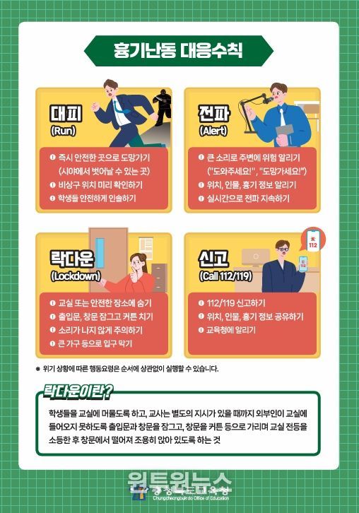 이에 따라 충북교육청은 2025년 하반기에 개발‧보급한 행동 요령 중심의 위기대응 자료를 바탕으로, 학교 현장에서 실효성 있게 활용될 수 있도록 교육부와의 긴밀한 협력을 이어갈 계획이다.