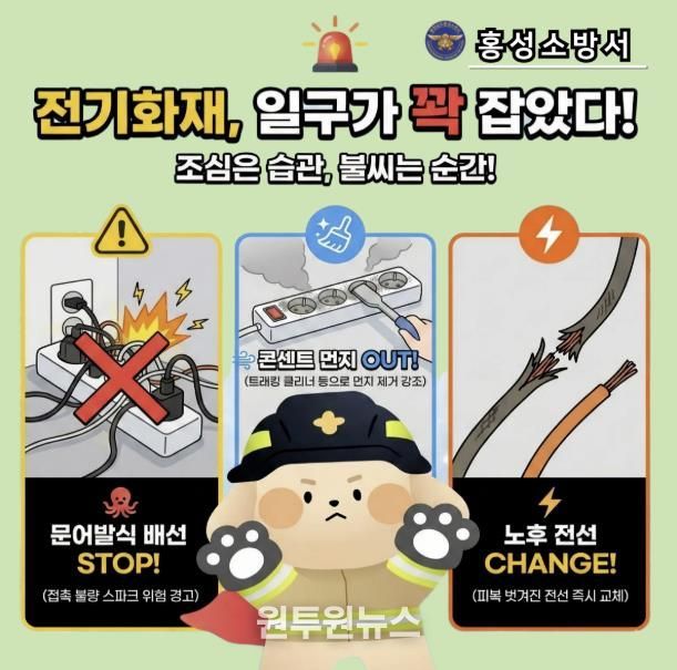 (원투원뉴스) 홍성소방서는 겨울철 난방기기 사용 증가로 전기화재 발생 위험이 높아짐에 따라, 전기화재 예방을 위한 집중 안전관리를 추진한다고 밝혔다.
