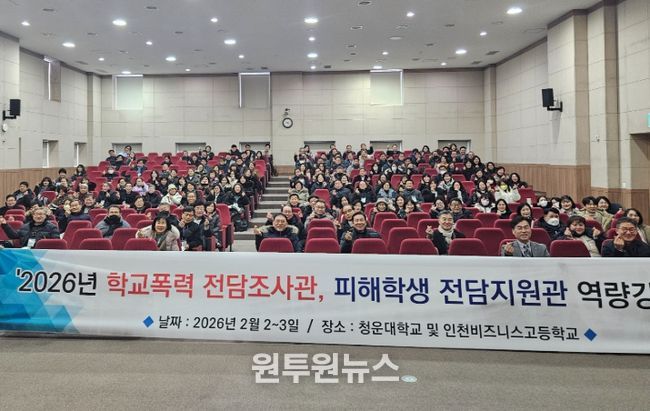 (원투원뉴스) 인천광역시교육청은 지난 2일부터 이틀간 청운대학교와 인천비즈니스고등학교에서 ‘2026년 학교폭력 전담조사관 역량 강화 연수’를 실시하고, ‘학교폭력 보안관’ 운영 준비를 마쳤다.