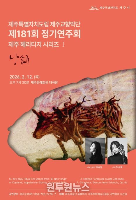 (원투원뉴스) 제주도립 제주교향악단은 2월 12일 오후 7시 30분 제주문예회관 대극장에서 제181회 정기연주회를 개최한다.