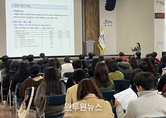 특히 제주시에서 오랜 경험을 쌓아온 회계 및 계약 담당 선배 공직자가 강사로 나서, 기초적인 회계 개념부터 실질적인 업무 사례, 반복적으로 지적되는 감사 사례 등을 중심으로 진행되어 참가자들의 실질적인 이해도를 높였다.