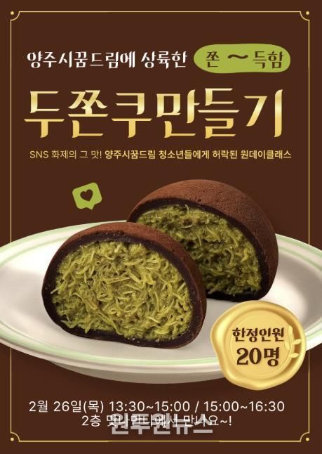 (원투원뉴스) 양주시학교밖청소년지원센터는 지난 1월 청소년자치회의에서 나온 청소년들의 의견과 수요를 적극 반영해 ‘두바이쫀득쿠키 원데이클래스’를 오는 2월 25일 운영한다.
