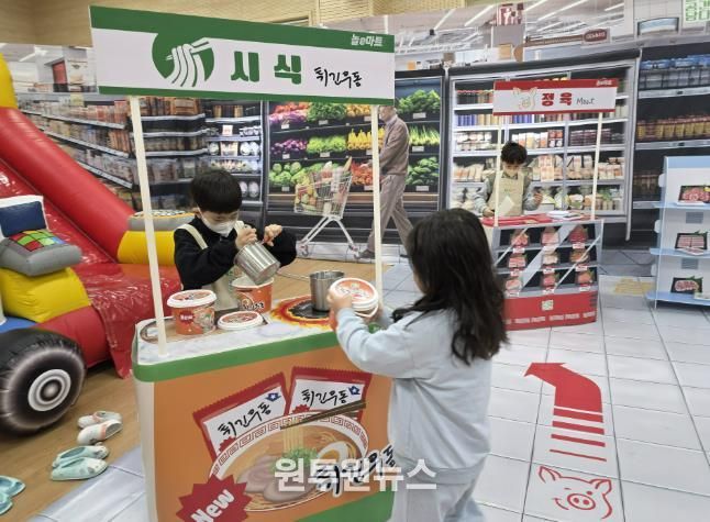 이날 유치원 강당은 계산대와 화폐, 과일·채소·과자·생필품 등 다양한 물품이 갖춰진 마트 공간으로 꾸며져 실제 생활과 유사한 환경을 조성했다. 유아들은 손님과 주인 역할을 나누어 물건을 고르고 값을 지불하는 과정을 경험하며 놀이에 몰입했다.