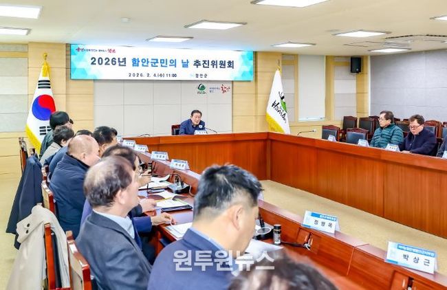 (원투원뉴스) 함안군은 2026년 함안군민의 날 행사를 성공적으로 개최하기 위해 지난 4일 군청 별관 3층 중회의실에서 조근제 함안군수를 위원장으로 한 ‘2026년 함안군민의 날 추진위원회’ 회의를 열었다고 밝혔다.