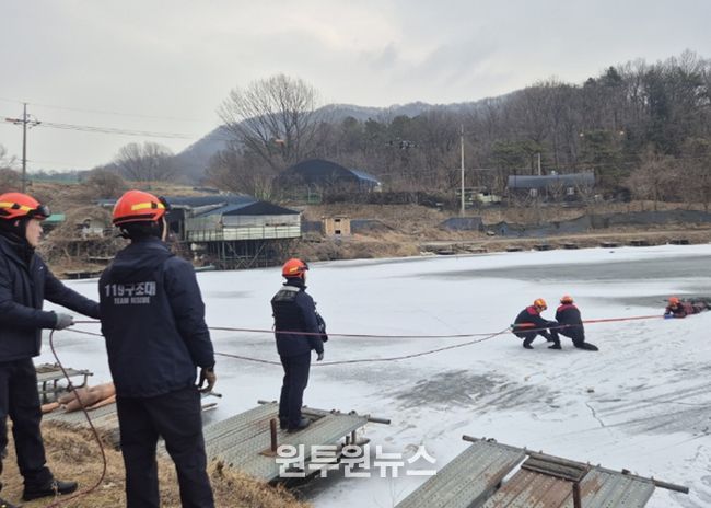 (원투원뉴스) 광명소방서는 4일 오전 노온사저수지일원에서 겨울철 수난사고에 대비해 구조대원의 현장 대응역량 강화를 위한 동계 수난사고 특별구조훈련을 실시했다.