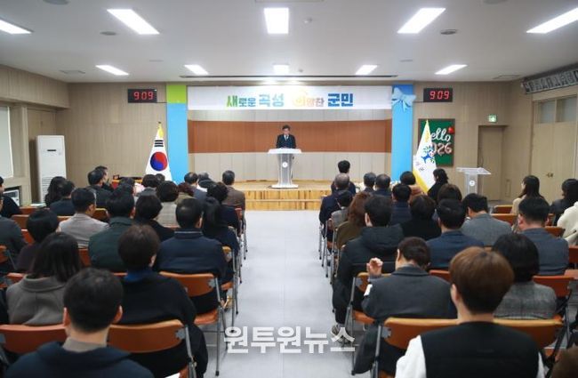 (원투원뉴스) 전남 곡성군은 지난 2일 군청 대통마루에서 공직자 150여 명이 참석한 가운데 정례조회를 열고, 연초부터 이어진 주요 군정 현안을 정리하며 농어촌 기본소득과 군민과의 대화, 설 명절 대비 대책 등 생활과 직결된 정책 추진 상황을 종합적으로 점검했다.