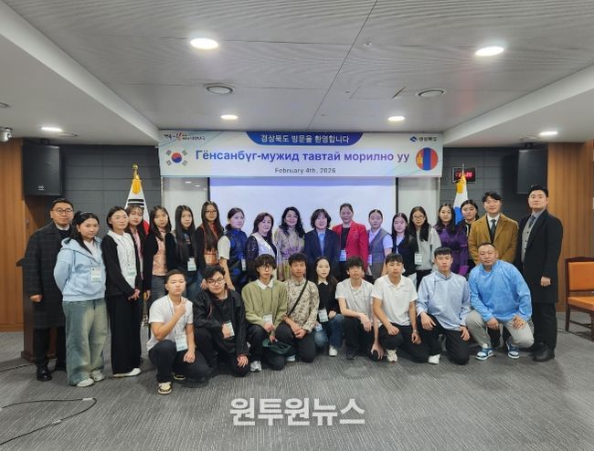 (원투원뉴스) 경상북도는 2월 4일, 몽골 울란바토르 경북학당 소속 예비 유학생들이 경상북도청을 방문해 도정 현황과 외국인 유학생 유치 정책을 살펴보는 뜻깊은 시간을 가졌다고 밝혔다.