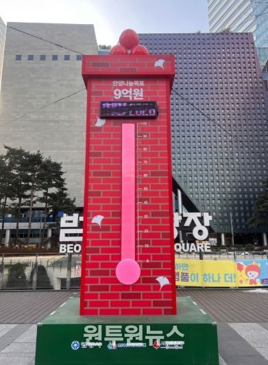 (원투원뉴스) 안양시는 범계역 광장에 설치된 ‘사랑의 온도탑’이 올해도 100도를 넘겼다고 4일 밝혔다. 지난해 12월 1일부터 올해 1월 31일까지 진행된 모금 결과, 시민과 기업의 참여로 온도는 최종 101도를 기록했다.